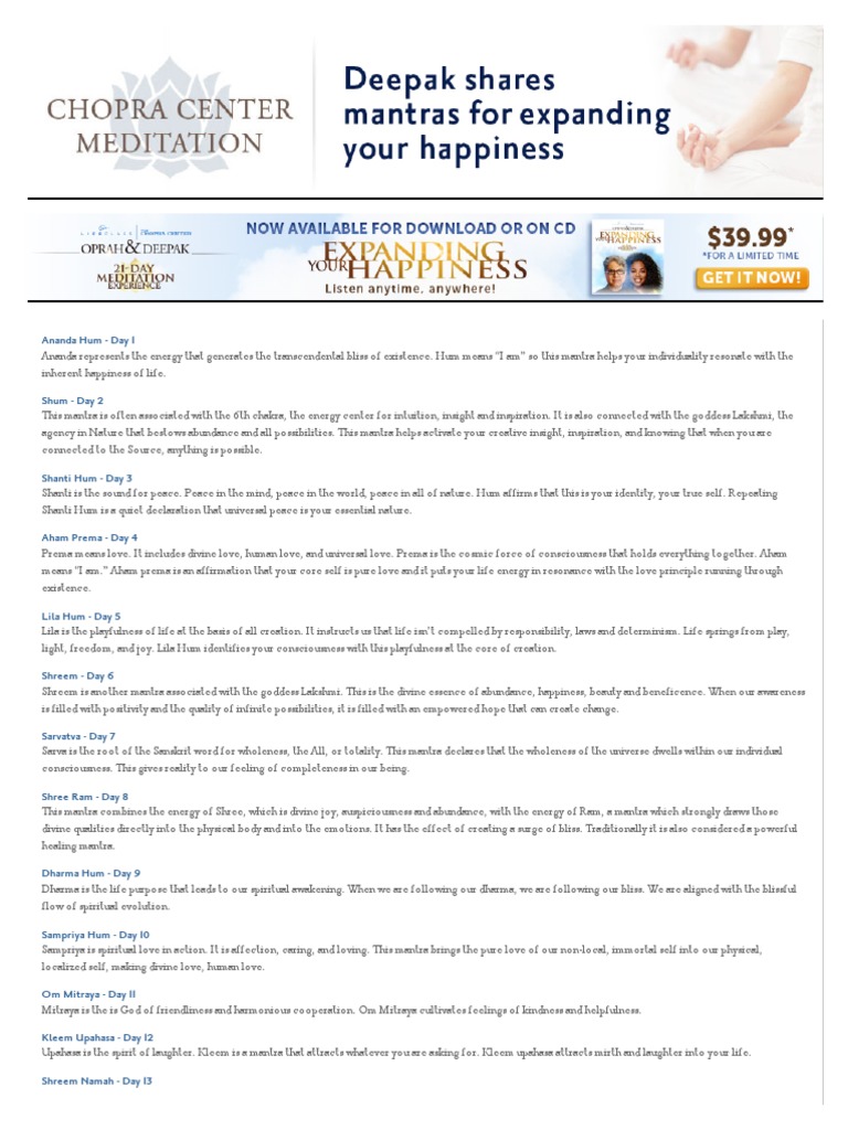 Expanding Your Happiness Mantras 21 Day Meditation Experience Pdf Mantra Sri